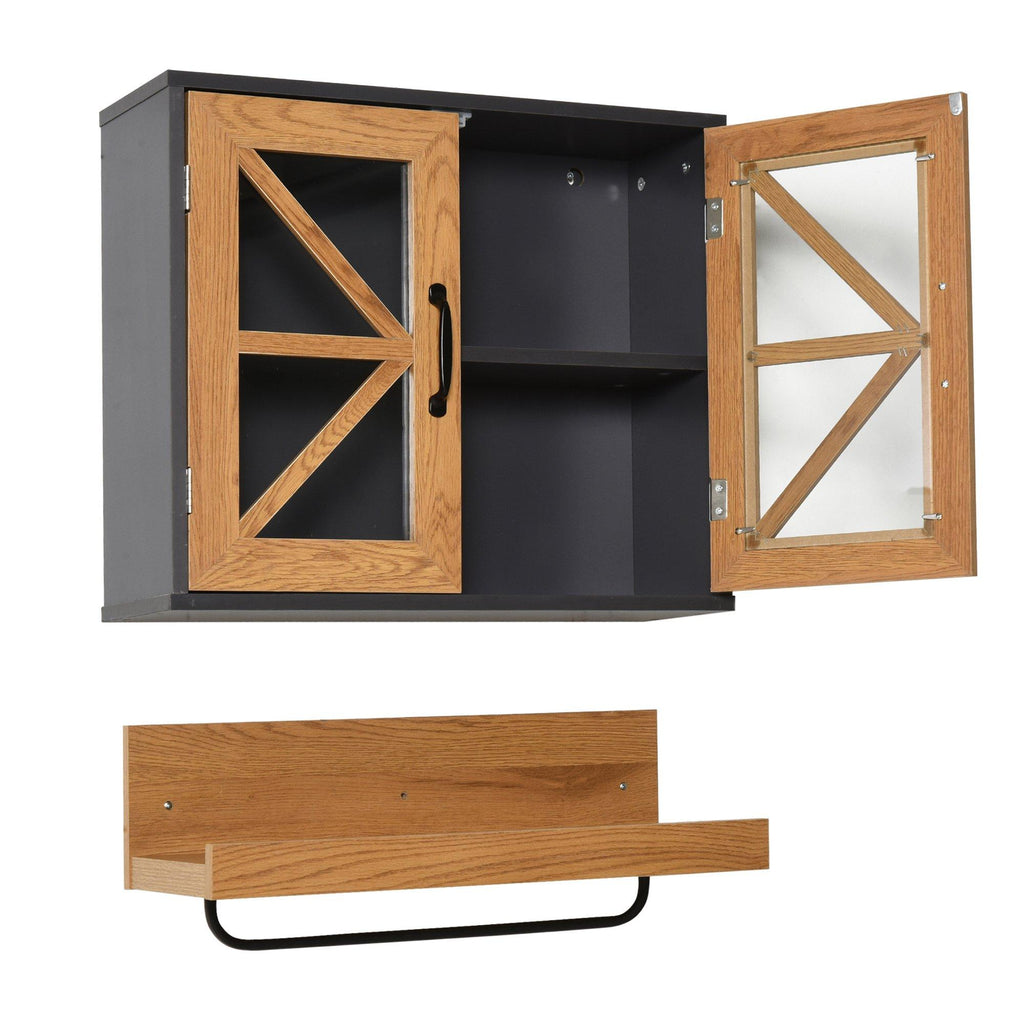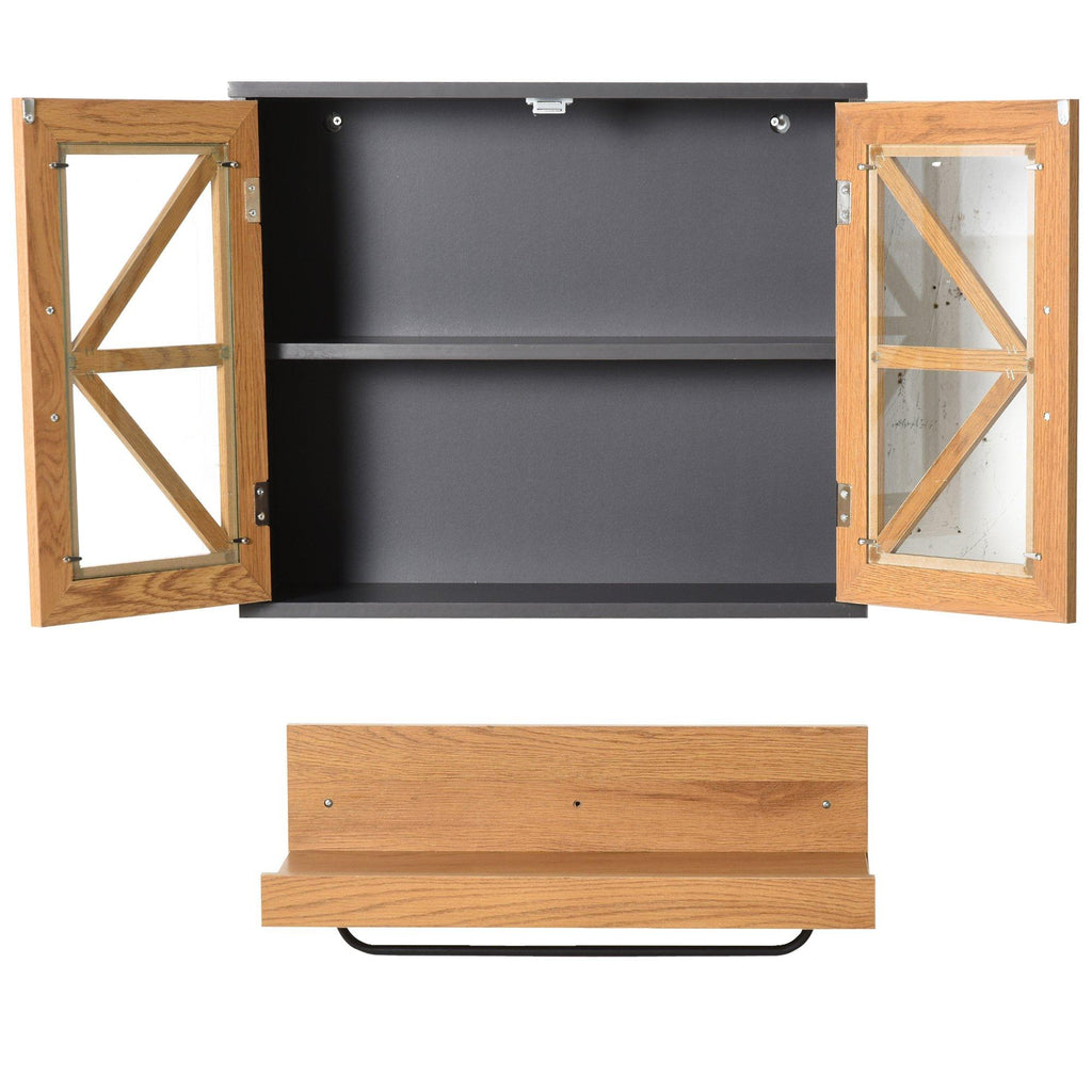 Wandschrank Badezimmerschrank 2 Türen und Regal mit Handtuchhalter