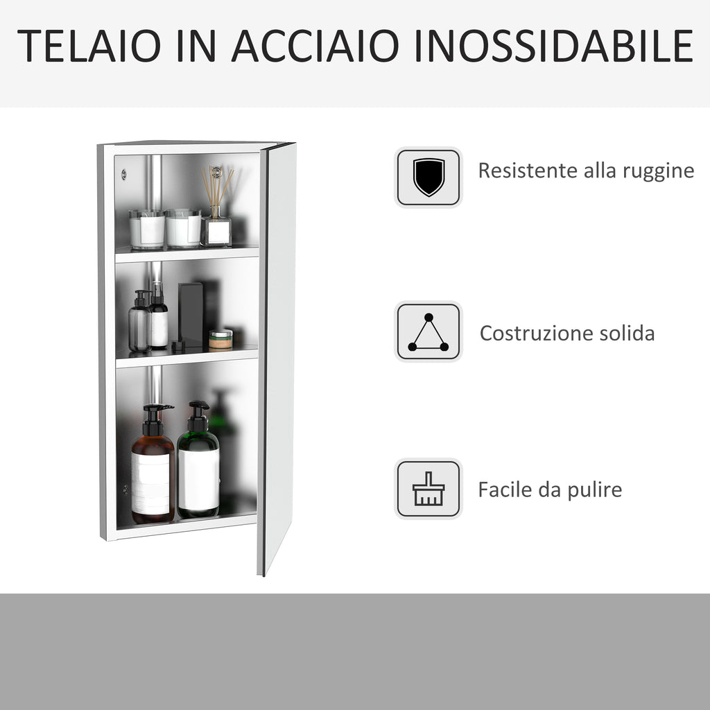 Suchen Sie nach einer platzsparenden Lösung für Ihr Wohnzimmer? Dieser Badezimmer-Eckschrank es ist perfekt für dich! Ohne sichtbare Rahmen, Scharniere oder Befestigungen bietet es Ihnen eine zu 100 % reflektierende Oberfläche, ideal, um selbst kleinste Räume aufzuwerten. Im Inneren befinden sich 3 komfortable Edelstahlregale zur Aufbewahrung all Ihrer Badezimmerprodukte wie Zahnbürste, Rasierer, Aftershave und Parfüm. Organisieren Sie Ihr Badezimmer mit diesem praktischen und funktionalen Schrank neu !