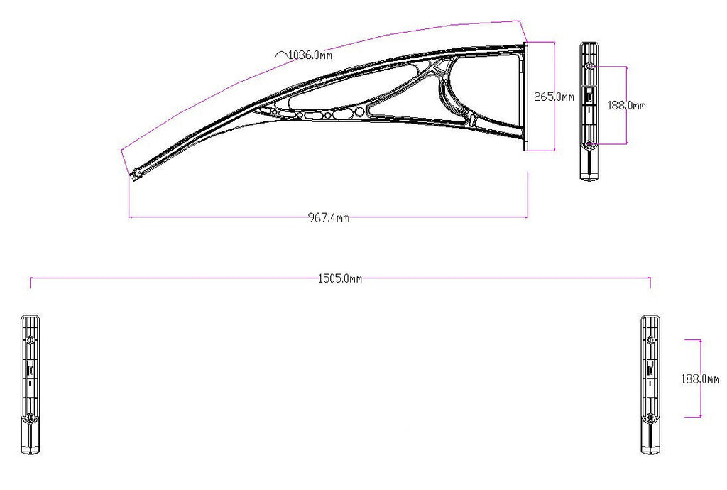Vordach 150 x 100 cm aus satiniertem Wabenpolycarbonat