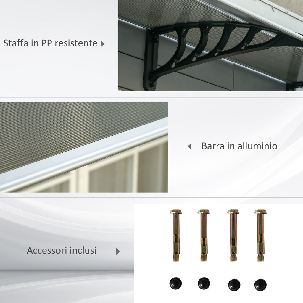 Schützen Sie Ihre Türen und Fenster das ganze Jahr über vor Witterungseinflüssen mit diesem durchsichtigen, doppellagigen Outdoor-Vordach. Mit dem mitgelieferten Zubehör einfach an der Wand zu montieren. Das gebogene Design sorgt für eine bessere Schutzzone. Schaffen Sie einen Bereich, der vor UV-Strahlen, Regen oder Schnee geschützt ist. Genießen Sie die Schönheit und den Schutz dieses Outdoor-Vordachs zu einem unglaublich günstigen Preis.