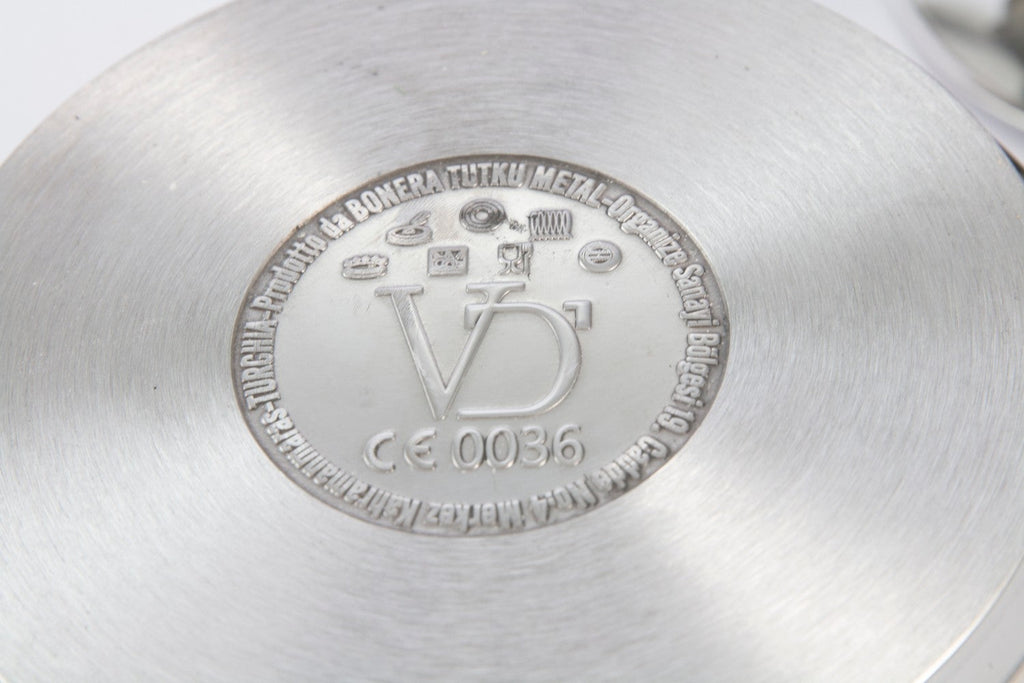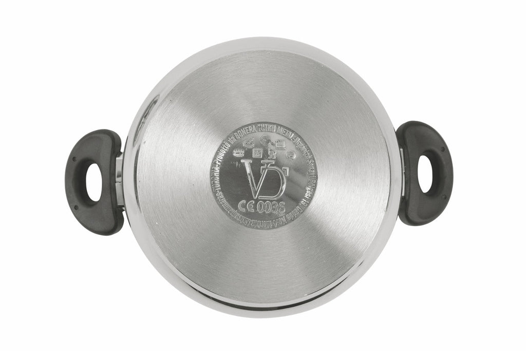 Es ist für alle Herdarten, einschließlich Induktion, geeignet und verfügt über eine dreifache Stahl-Aluminium-Stahl-Schicht, die eine gleichmäßige Wärmeausbreitung über die gesamte Oberfläche ermöglicht.