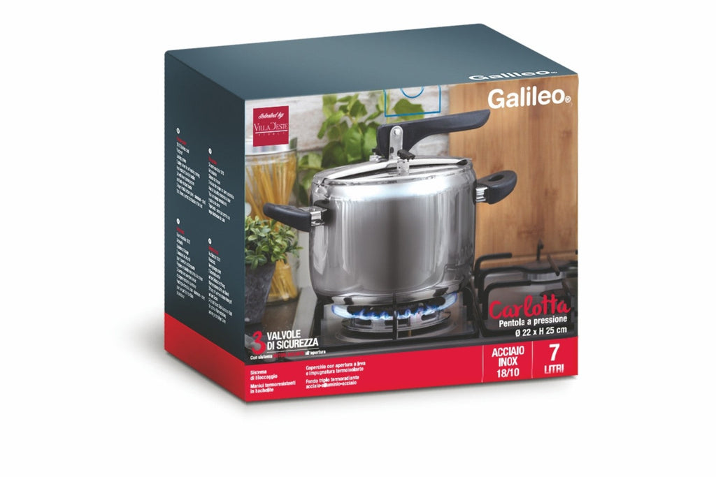 Schnellkochtopf aus Stahl Ø20cm 7 Liter Soriani Carlotta