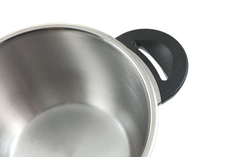 Mia-Töpfe sind aus robustem und widerstandsfähigem Stahl gefertigt, der dreifache Kapselboden ermöglicht eine gleichmäßige Wärmeverteilung, was den Kochvorgang erleichtert und den Geschmack der Speisen verbessert.