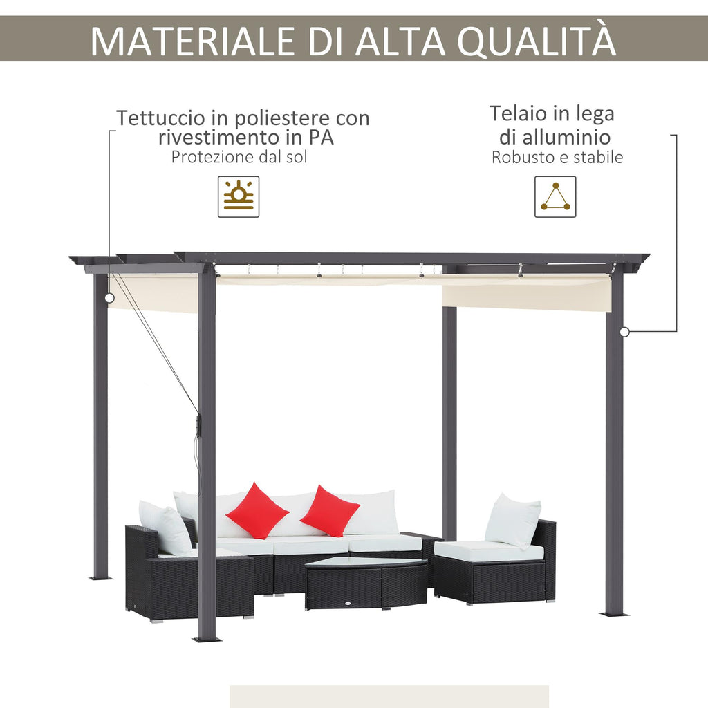 Gartenpergola 2,95 x 2,95 m aus Aluminium und cremeweißem Polyester