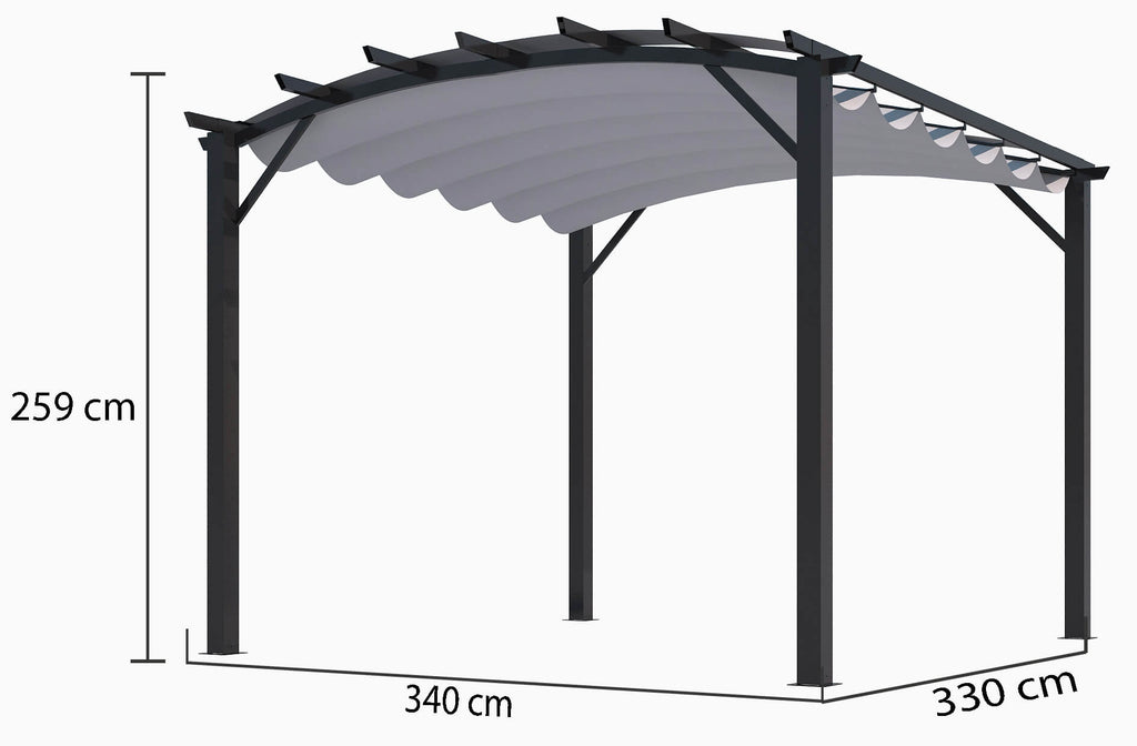 Pergola da Giardino 3,4x3,3x2,4 m in Alluminio con Telo di Copertura 140g/mq Grigio
