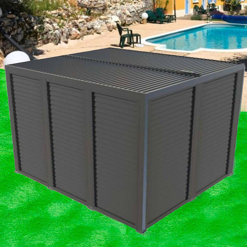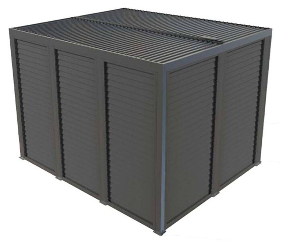- Copertura: pannelli in alluminio 90 mm, spessore 1mm, colore grigio antracite, orientabili fino a 90°