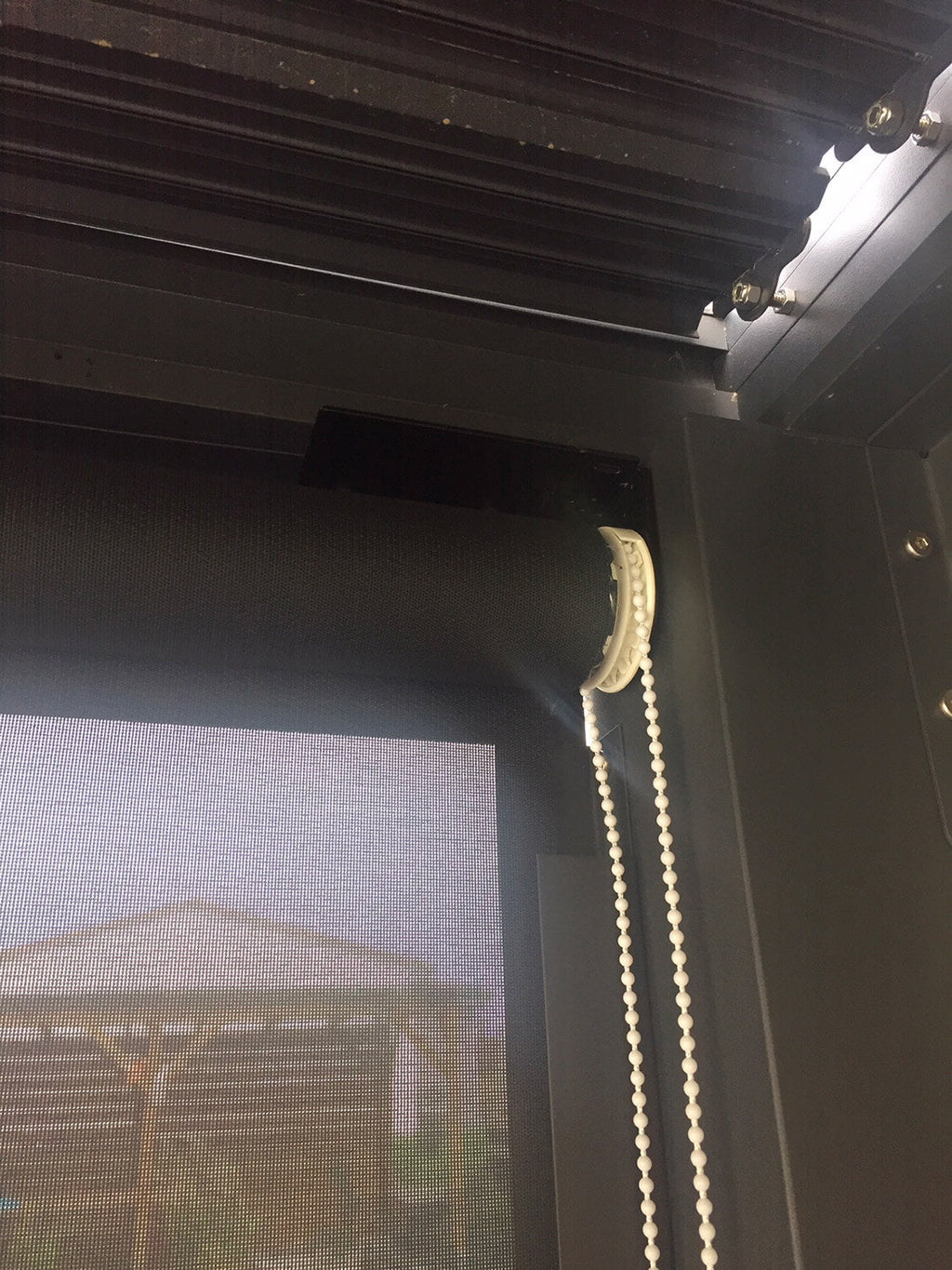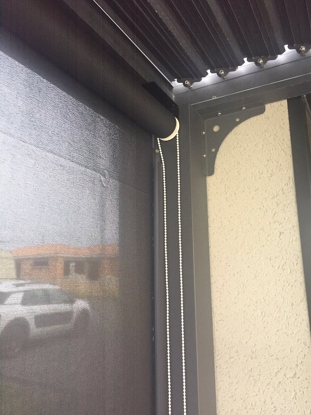 - Copertura: pannelli in alluminio 90 mm, spessore 1mm, colore grigio antracite, orientabili fino a 90°, dotati di manovella per apri-chiudi manuale