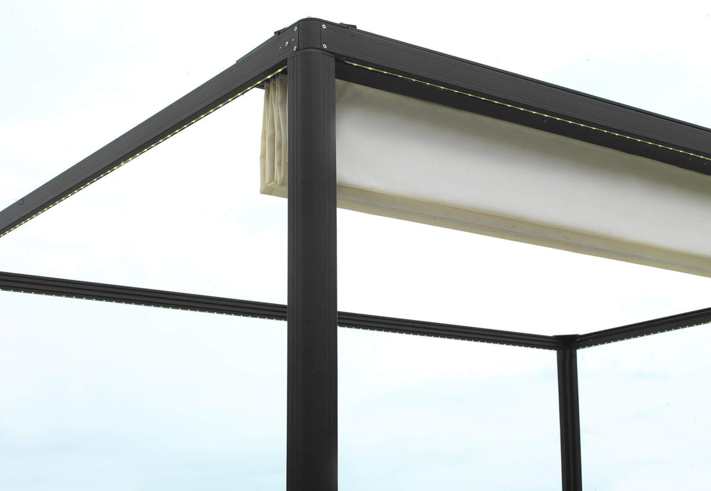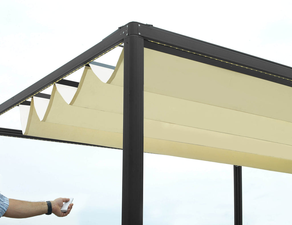 Gartenpergola 3 x 3 m aus Aluminium, elektrisch einziehbare Abdeckung, schwarz