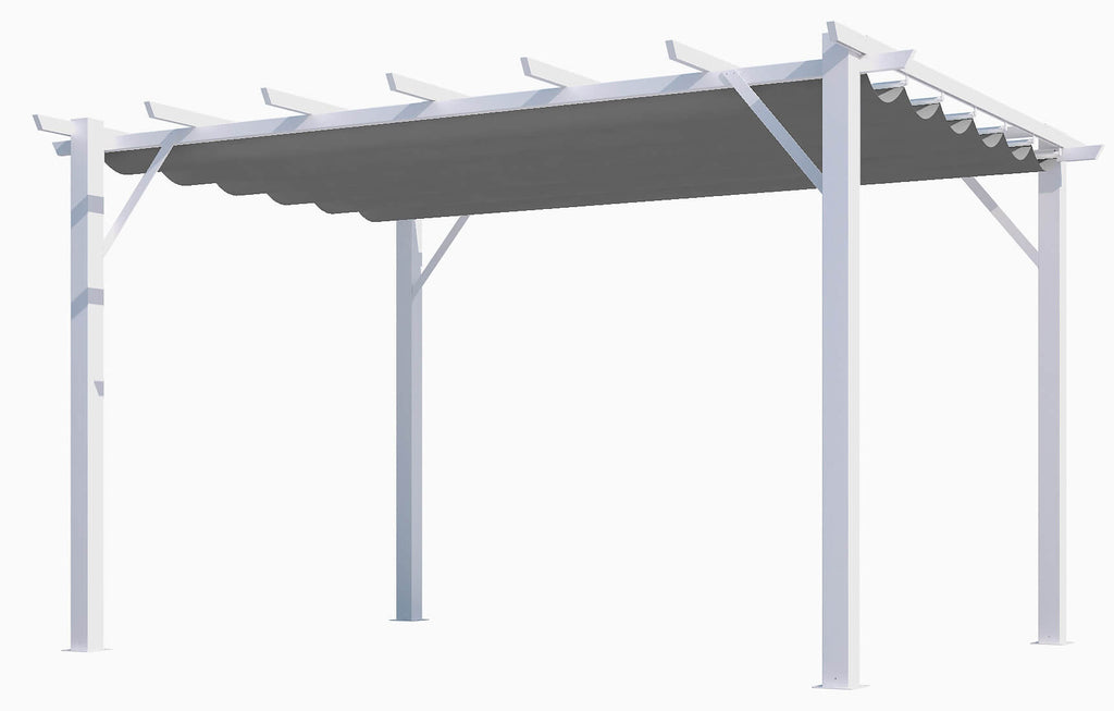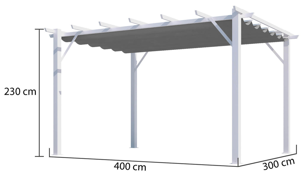 Pergola da Giardino 4x3x2,3 m in Alluminio Bianco con Telo di Copertura 140g/mq Grigio
