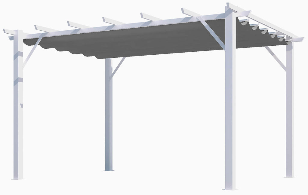 Pergola da Giardino 4x3x2,3 m in Alluminio Bianco con Telo di Copertura 280g/mq Grigio