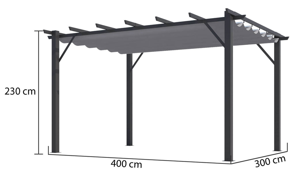 Pergola da Giardino 4x3x2,3 m in Alluminio Grigio Antracite con Telo di Copertura 140g/mq Grigio