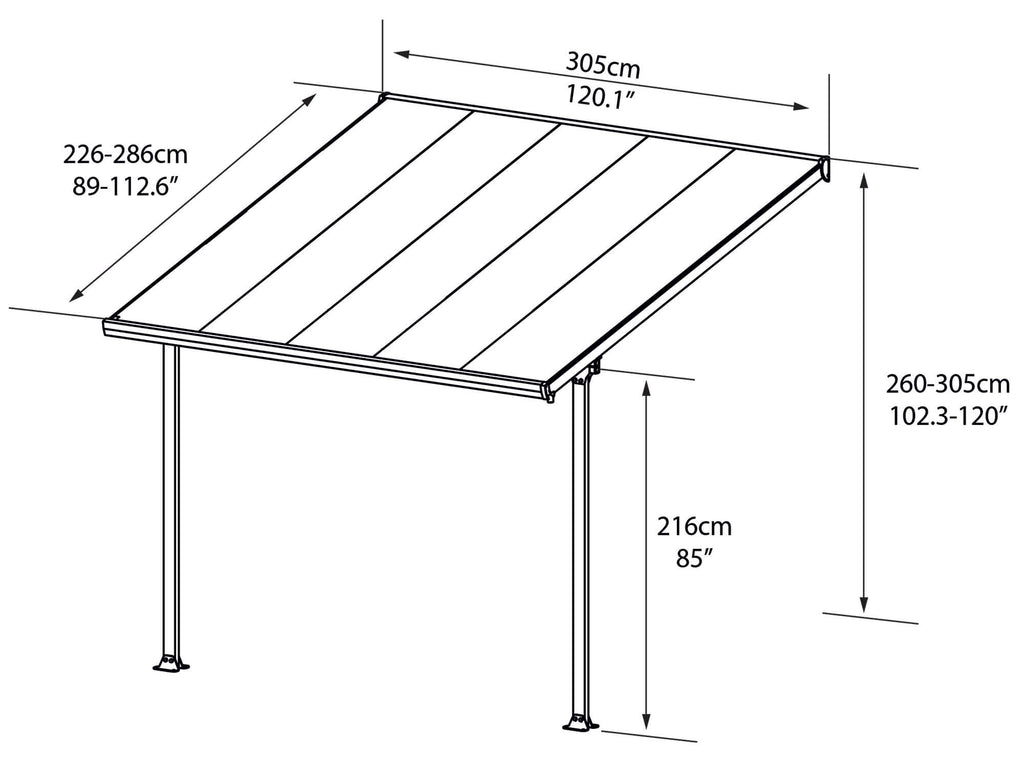 Technische Merkmale Gartenpergola aus Aluminium Onduline Emilia