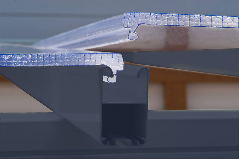- Die 8 mm dicken Polycarbonat-Wabenplatten bieten eine sehr hohe Beständigkeit gegen Stöße (Hagel) und alle Witterungseinflüsse.