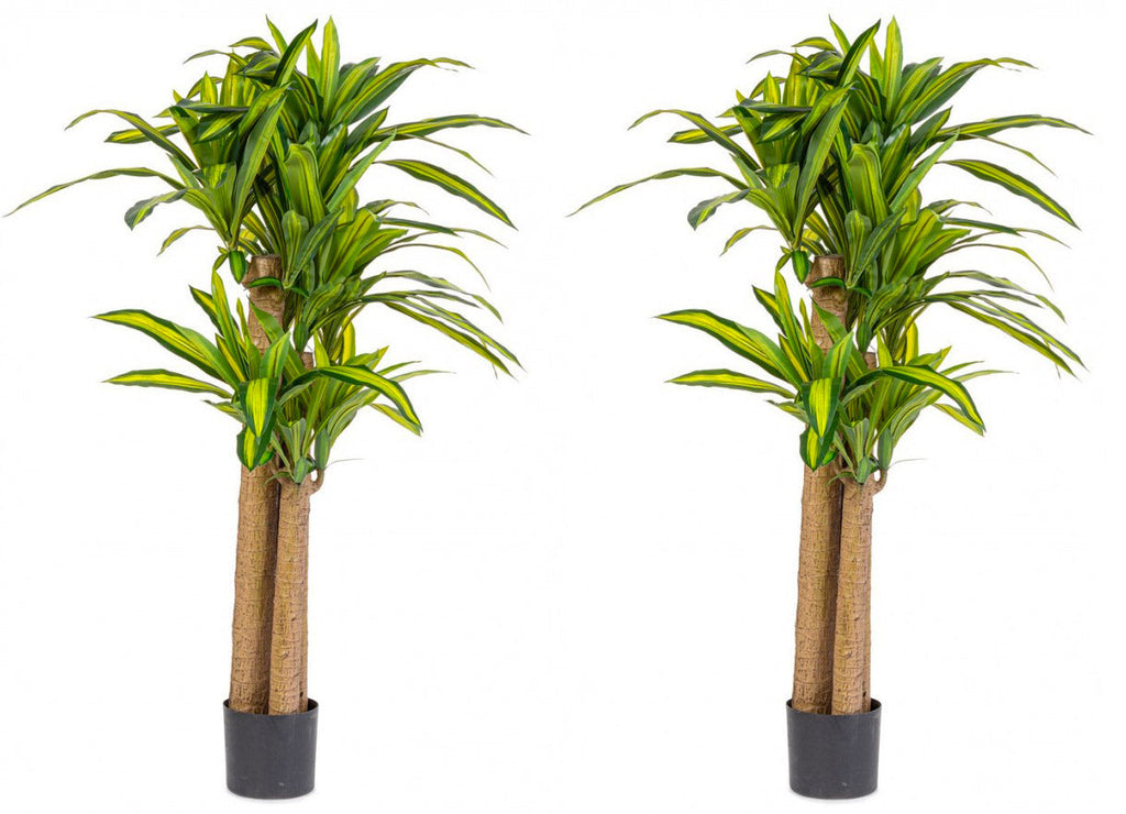 Set 2 Piante Artificiali Dracaena Ø110x150 cm in Plastica con Vasi Verde