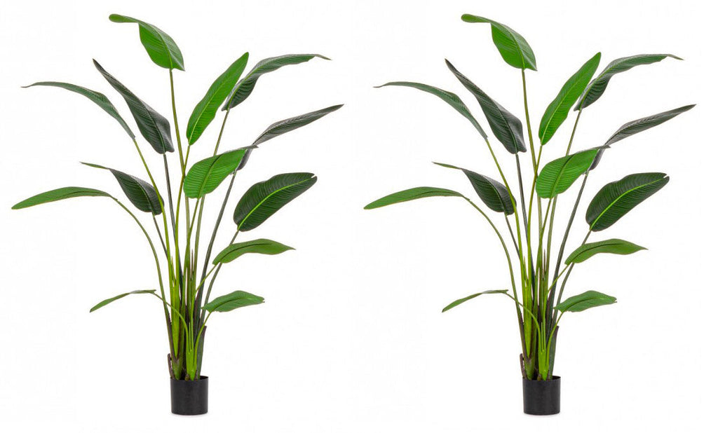 Set 2 Piante Artificiali Strelitzia 120x100x235 cm in Plastica con Vasi Verde