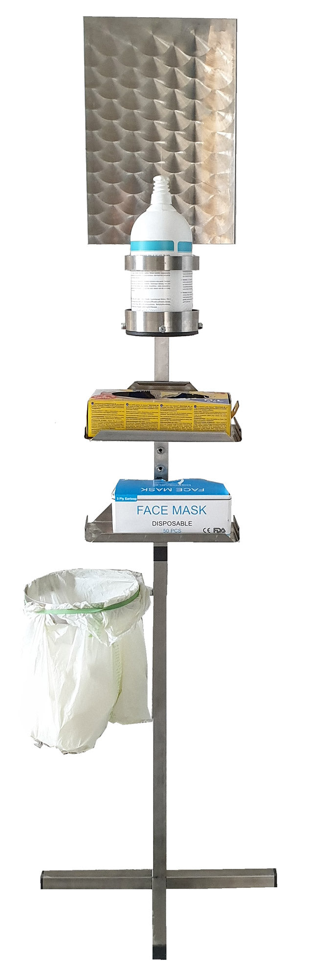 Ständer mit Spender für Handdesinfektionsmittel, 2 Ablagen und Halterung für Rocila-Stahlbeutel