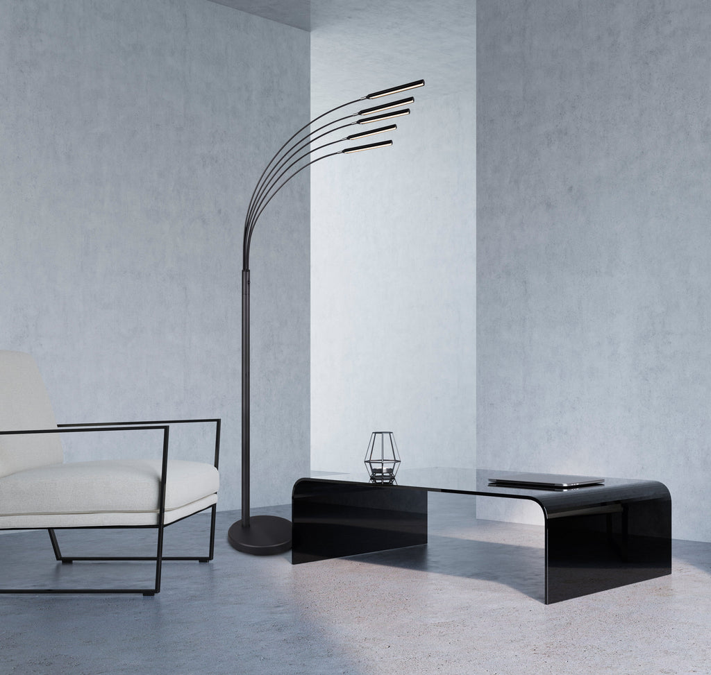 Schilfbogenförmige LED-Stehlampe Anthrazit 5 verstellbare Diffusoren und einstellbare Lichtstärke H. 180 cm
