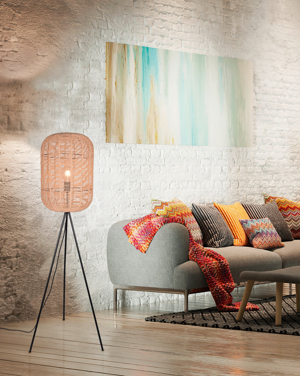 Runa Stehlampe Diffusor Groß Schwarzes Metall und Seil D.35Cm H. 150Cm