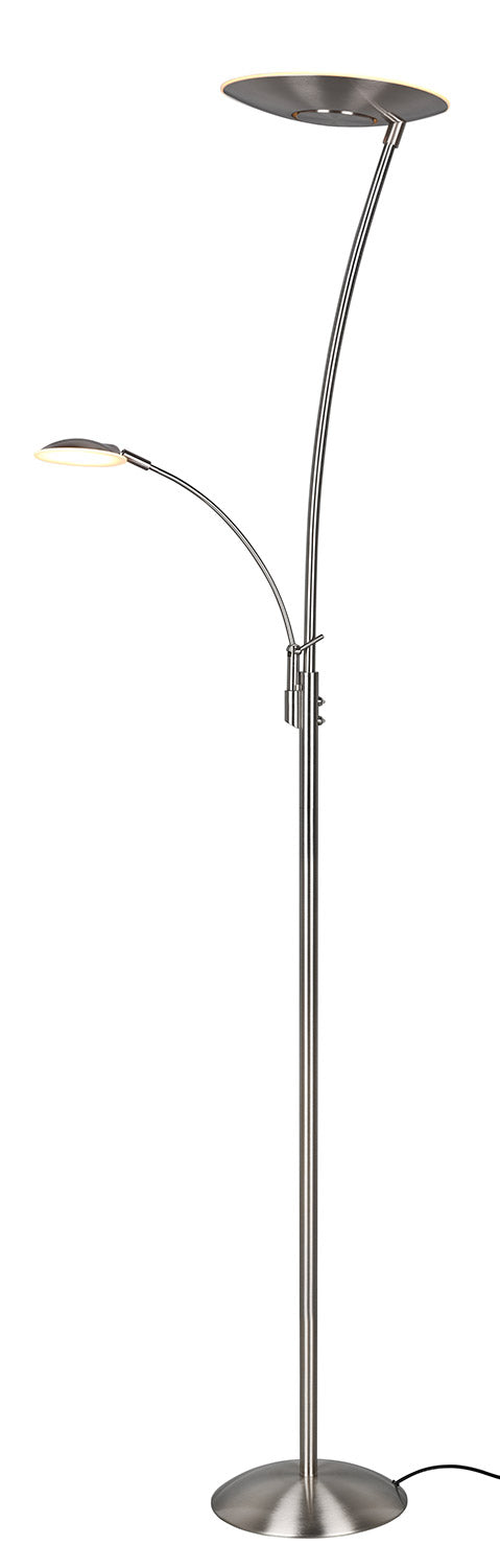Granby Piantana Led Metallo Acciaio con Luce Da Lettura con Interruttori Touch Separati Regolazione Intensità e Temperatura di Colore H. 180Cm