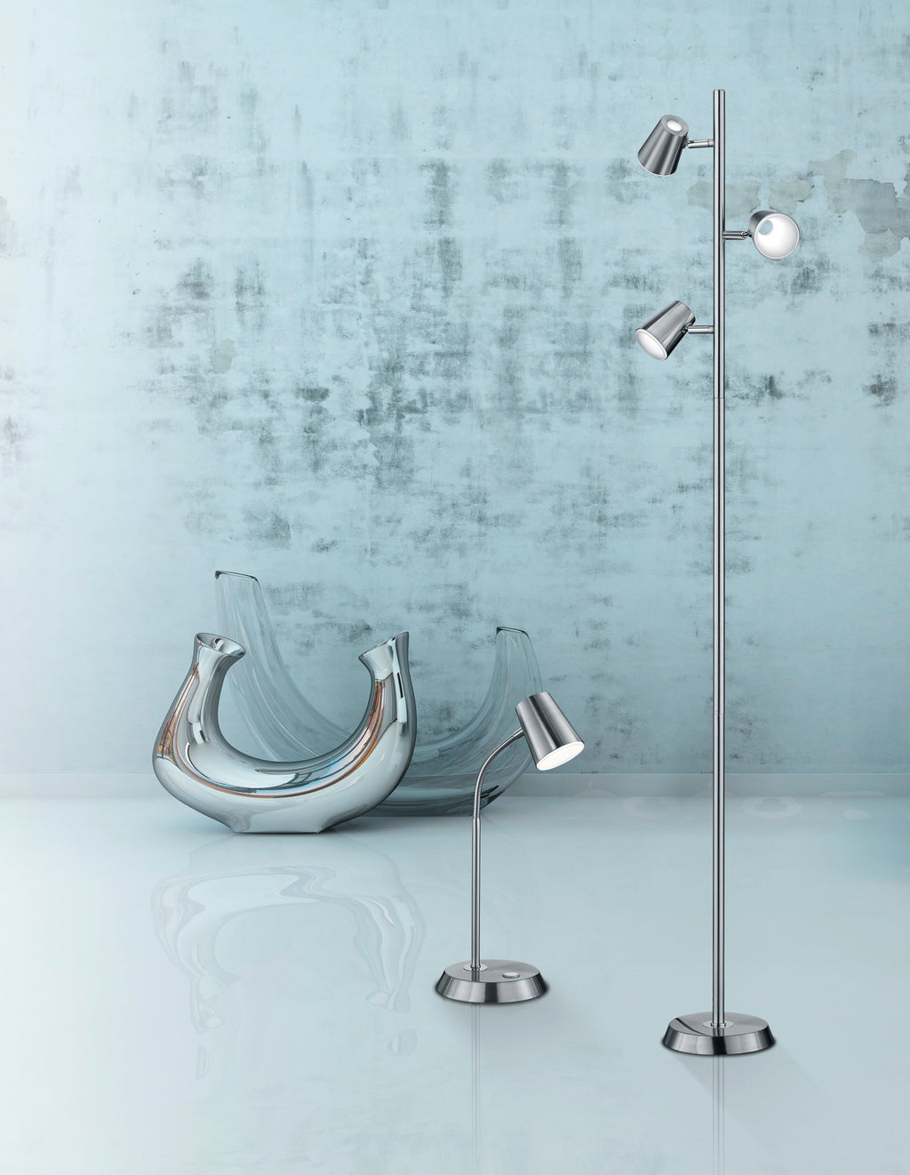 LED-Stehleuchte für den Innenbereich aus mattem Nickelmetall