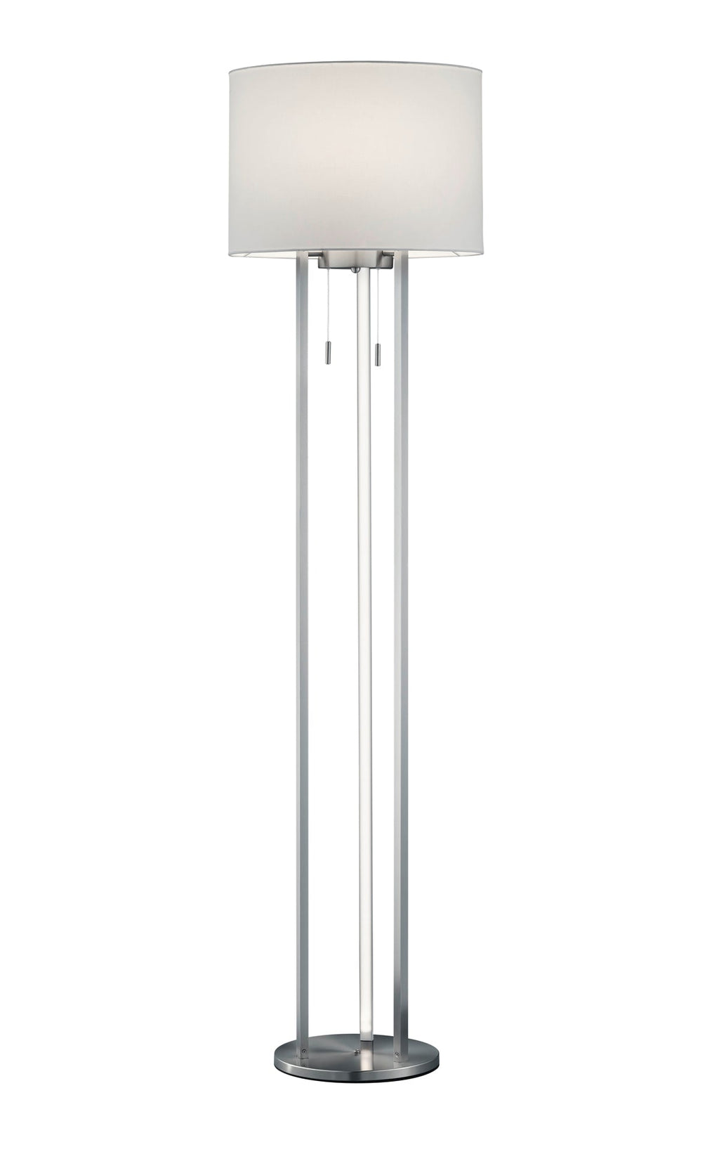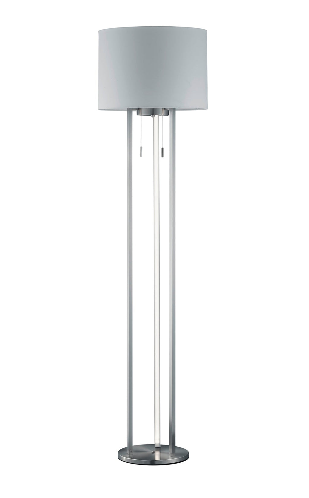 Tandori Stehlampe mit LED-Rahmen aus satiniertem Stahlmetall mit weißem Stoffdiffusor mit separatem Schalter H. 156 cm