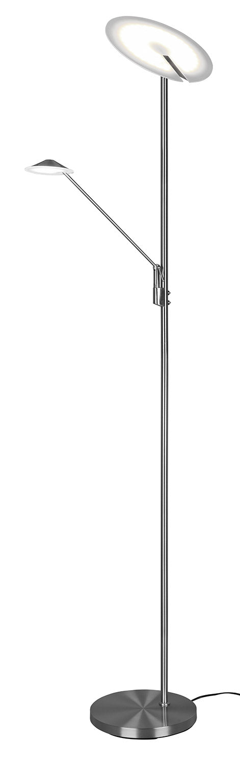 Brantford Piantana Led Metallo Acciaio con Luce Da Lettura con Interruttori Touch Separati Regolazione Intensità e Temperatura di Colore H. 180Cm