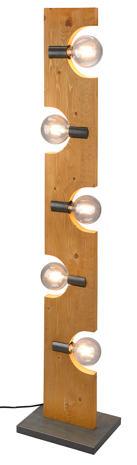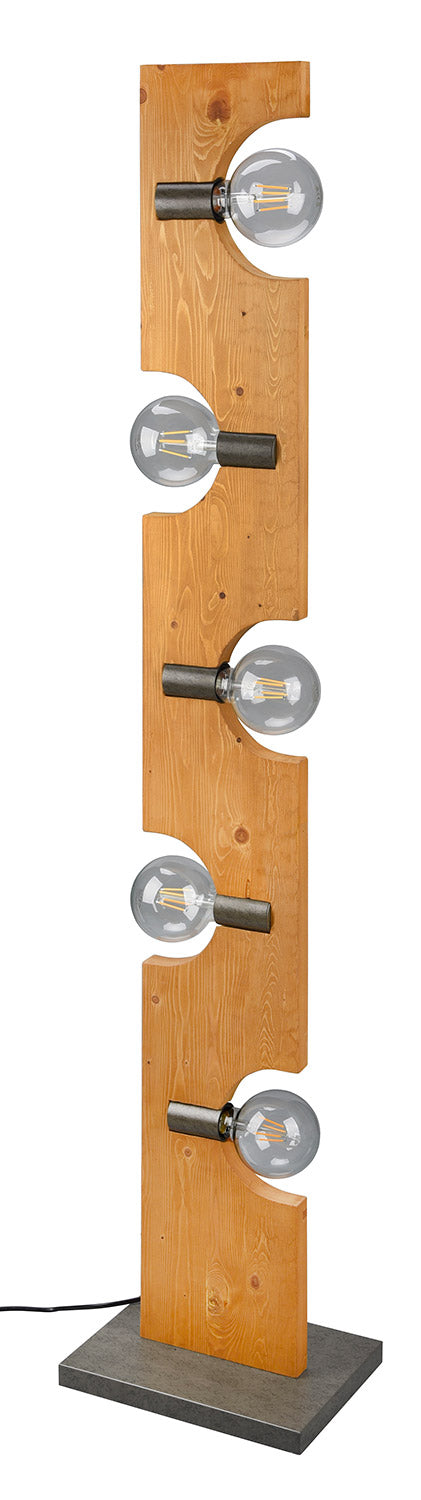 Tailor Piantana Legno Naturale e Metallo Acciaio Anticato 5 Luci H. 143Cm