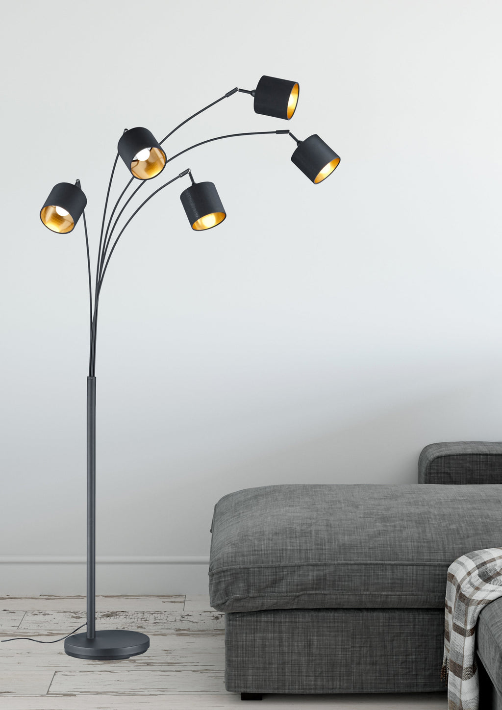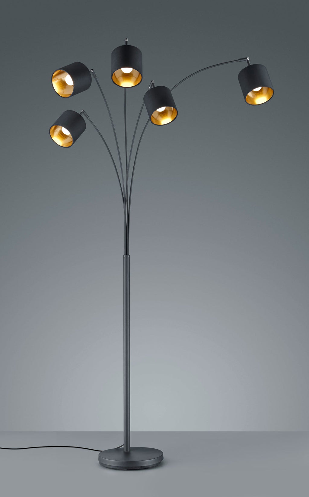 Tommy Arched Stehlampe mit 5 Diffusoren Schwarz und Gold Lampenschirme Basis Metall Mattschwarz H.200Cm