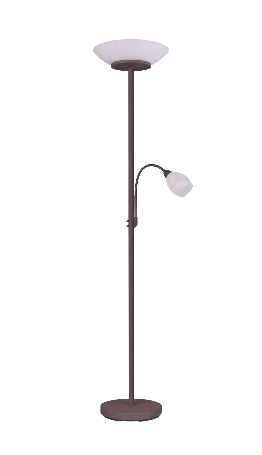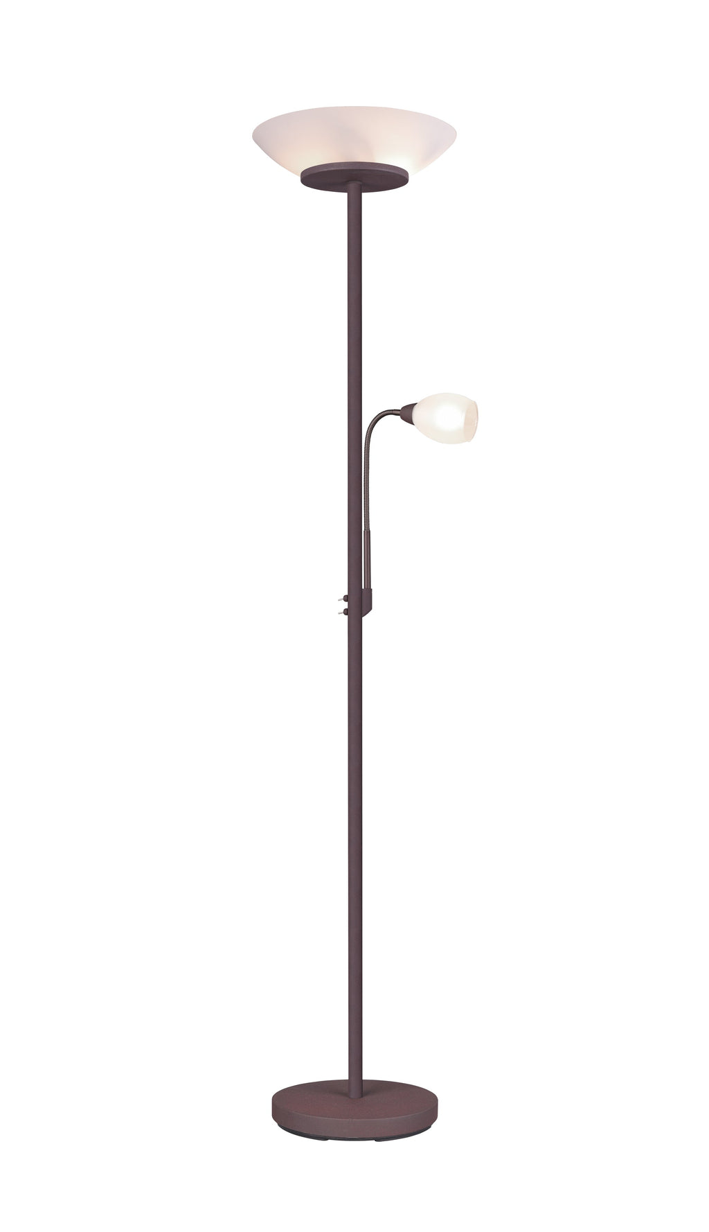 Gerry Stehlampe mit rostfarbenem Metall Leselampe mit Diffusoren aus weißem Glas H. 180 cm