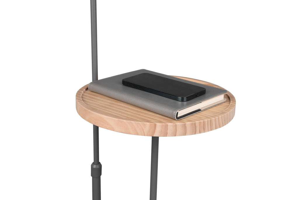 Butler Teleskop-Stehlampe aus anthrazitfarbenem Metall mit Holztisch H.150 cm