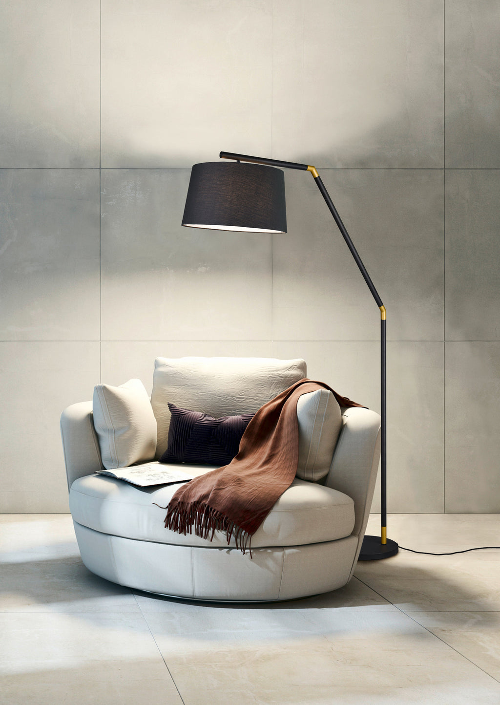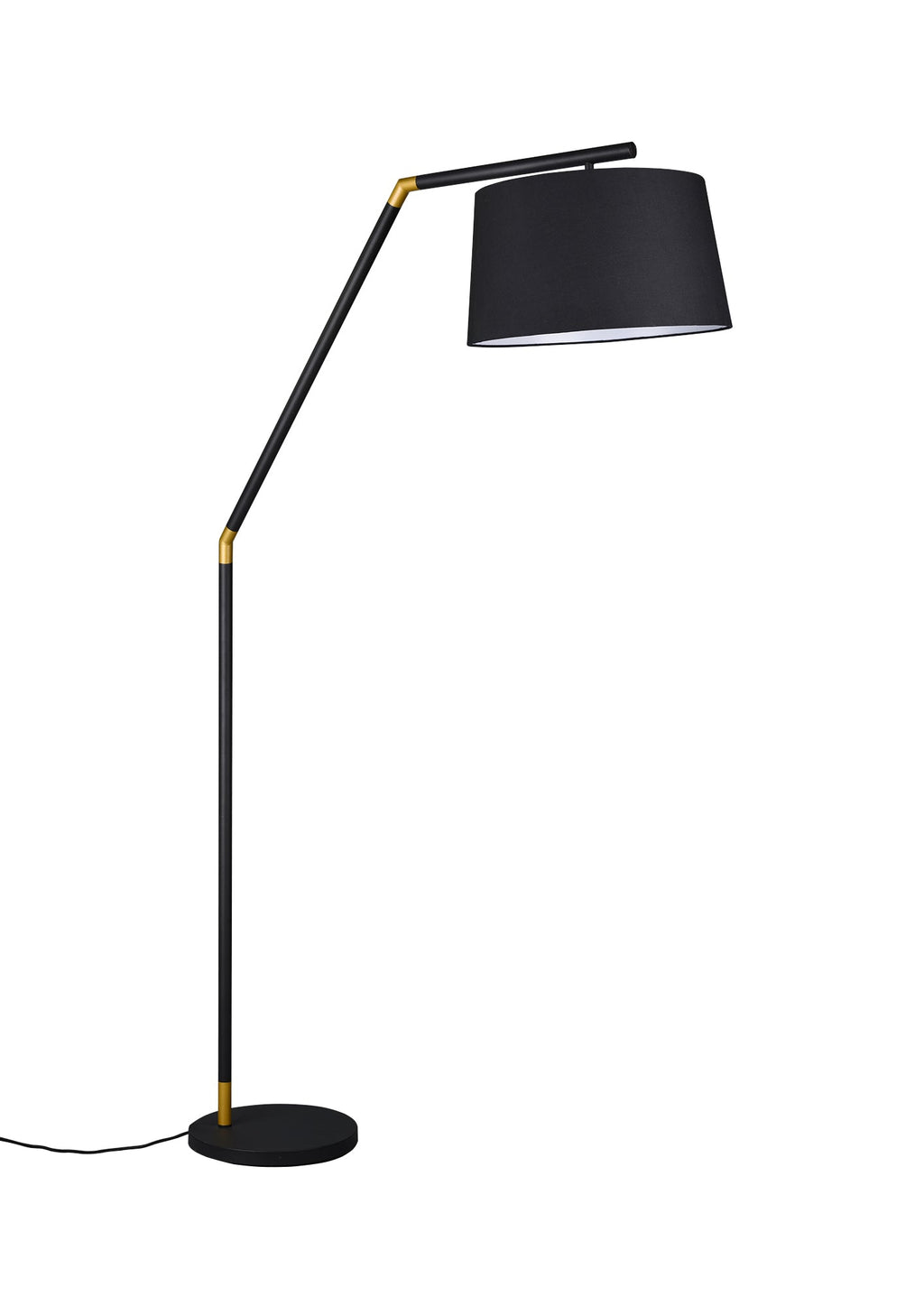 Tracy Stehlampe Schwarzes Metall mit goldenen Einsätzen und schwarzem Lampenschirm H. 175Cm D.40Cm