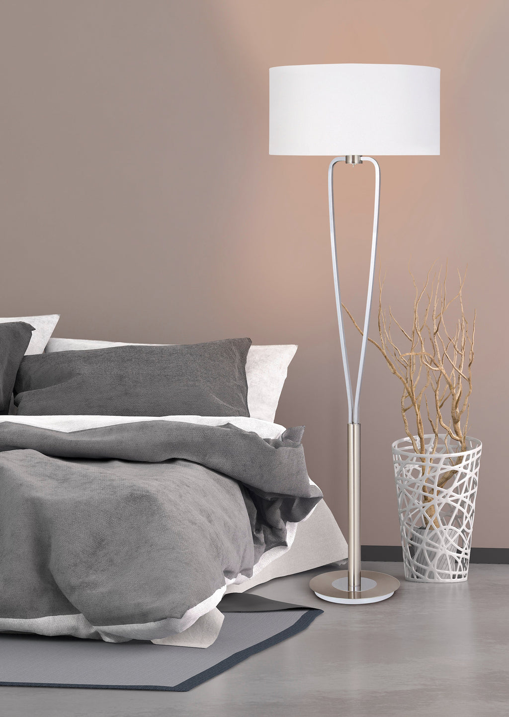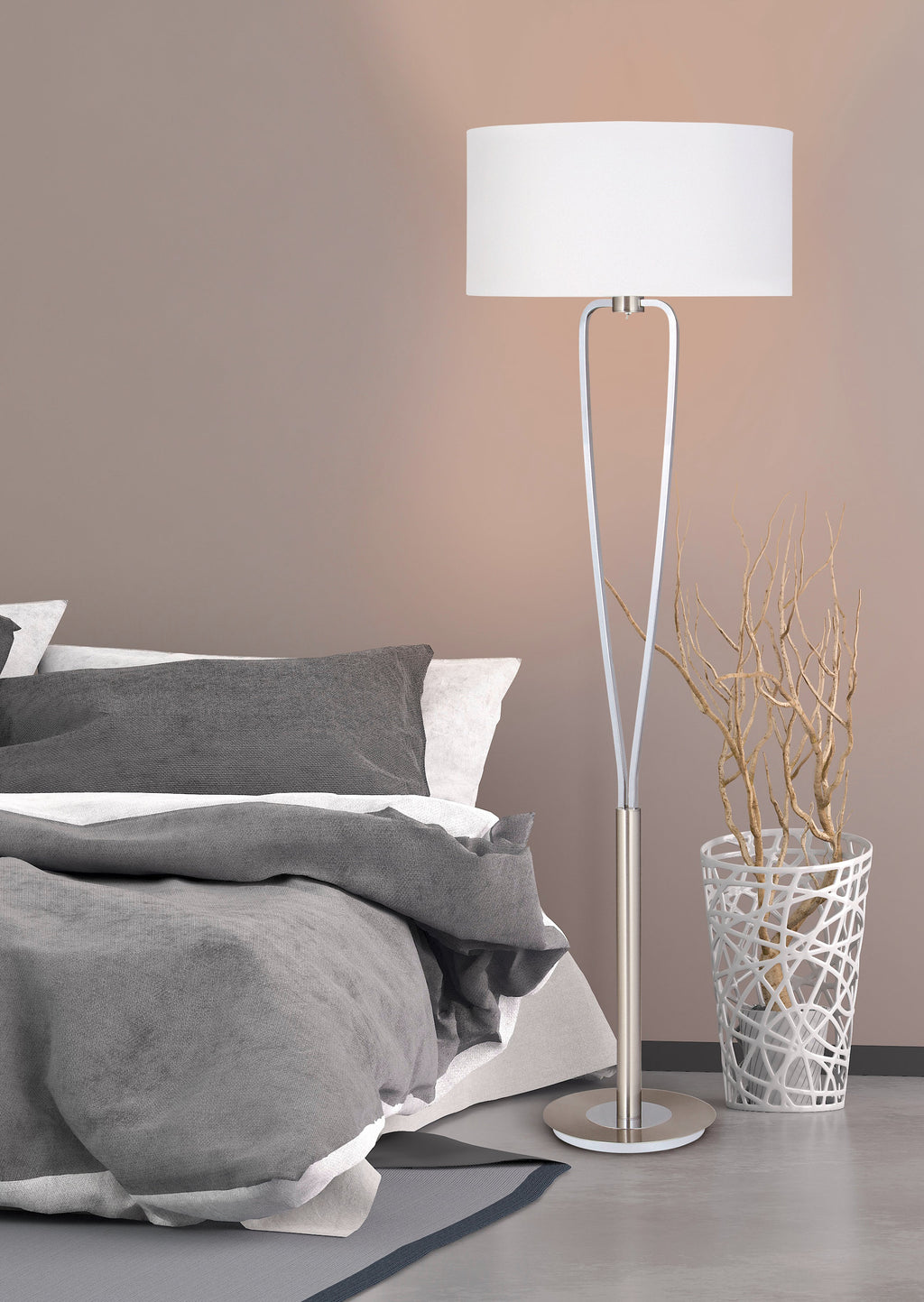 Paris II Stehlampe aus satiniertem Stahl mit Lampenschirm und Schalter H. 160 cm