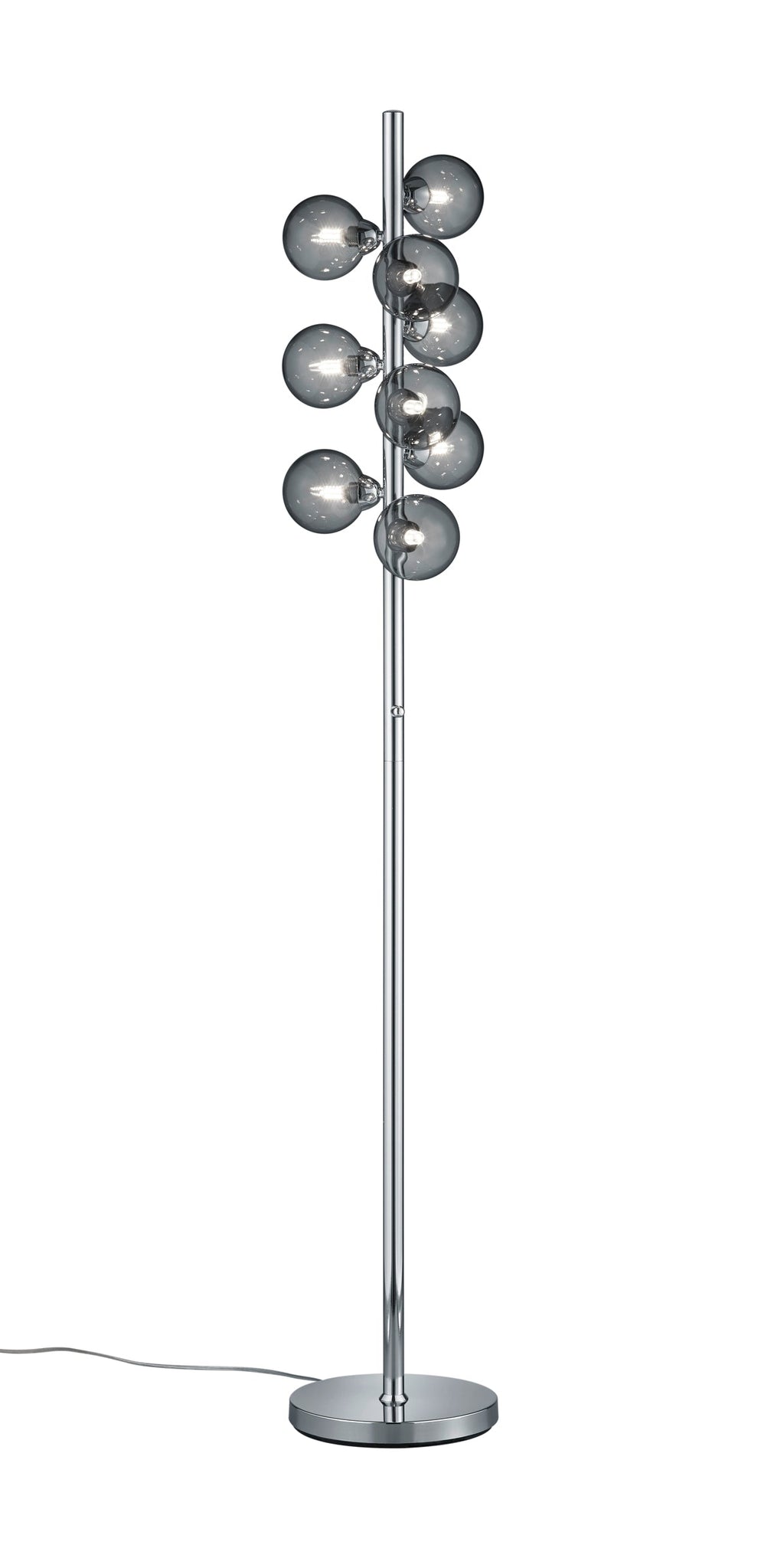 Alicia verchromte Stehlampe mit 9 Rauchglas-Diffusoren H. 155 cm