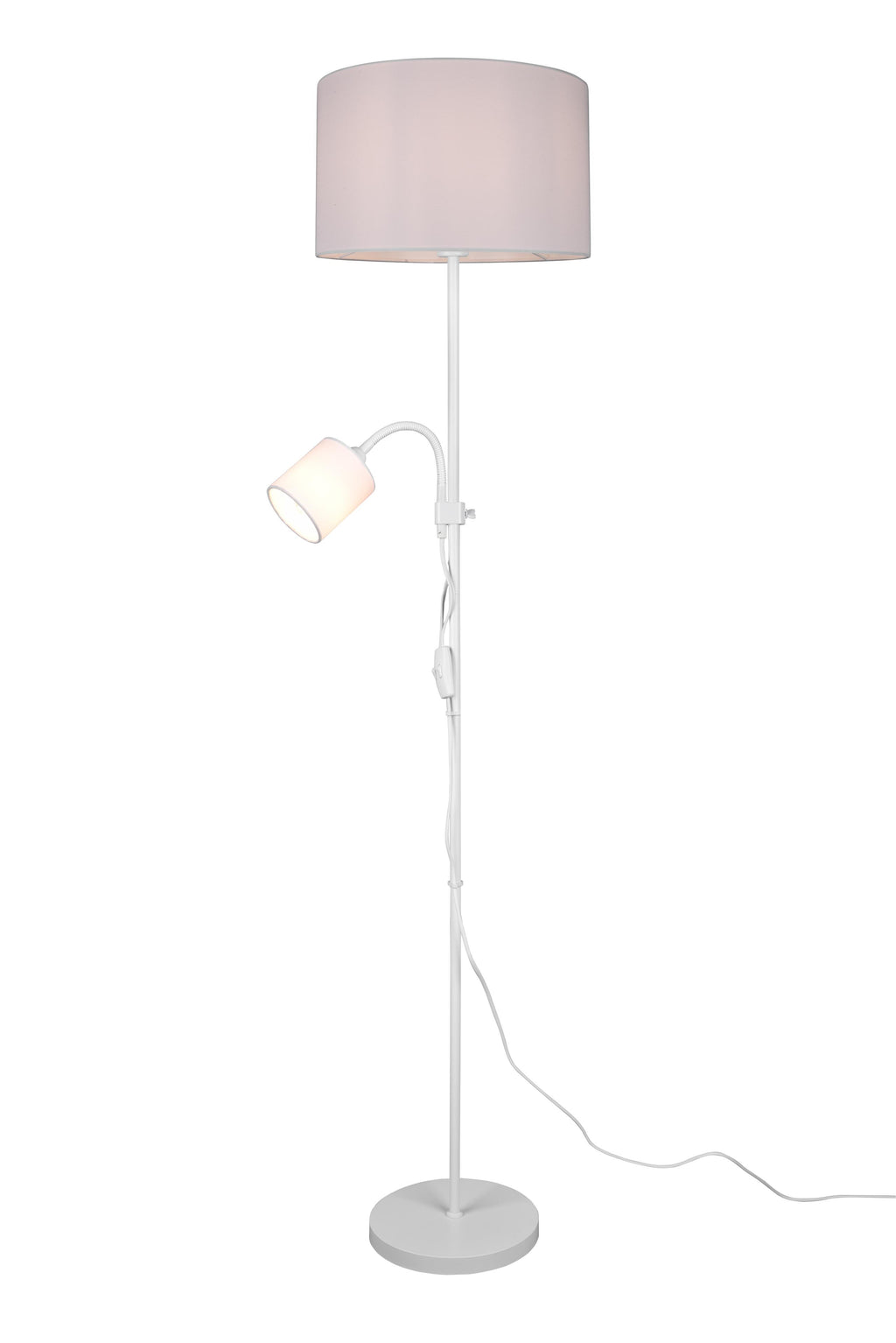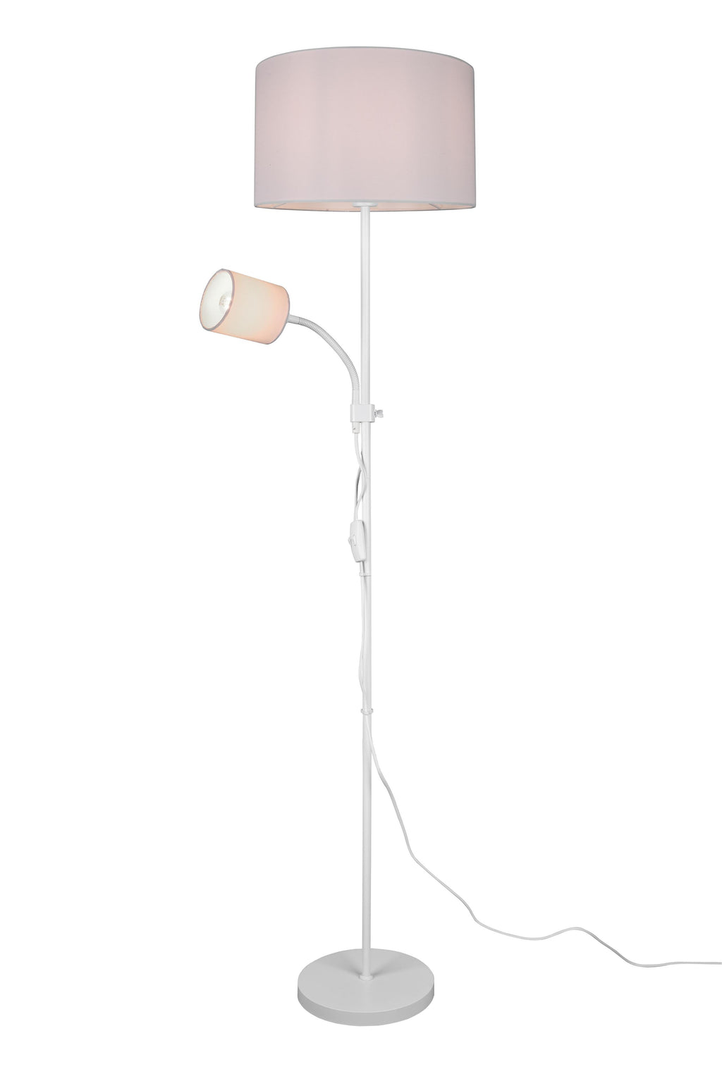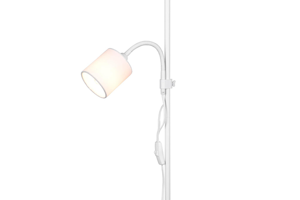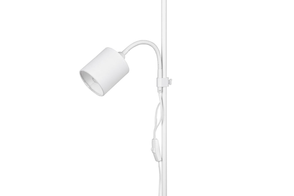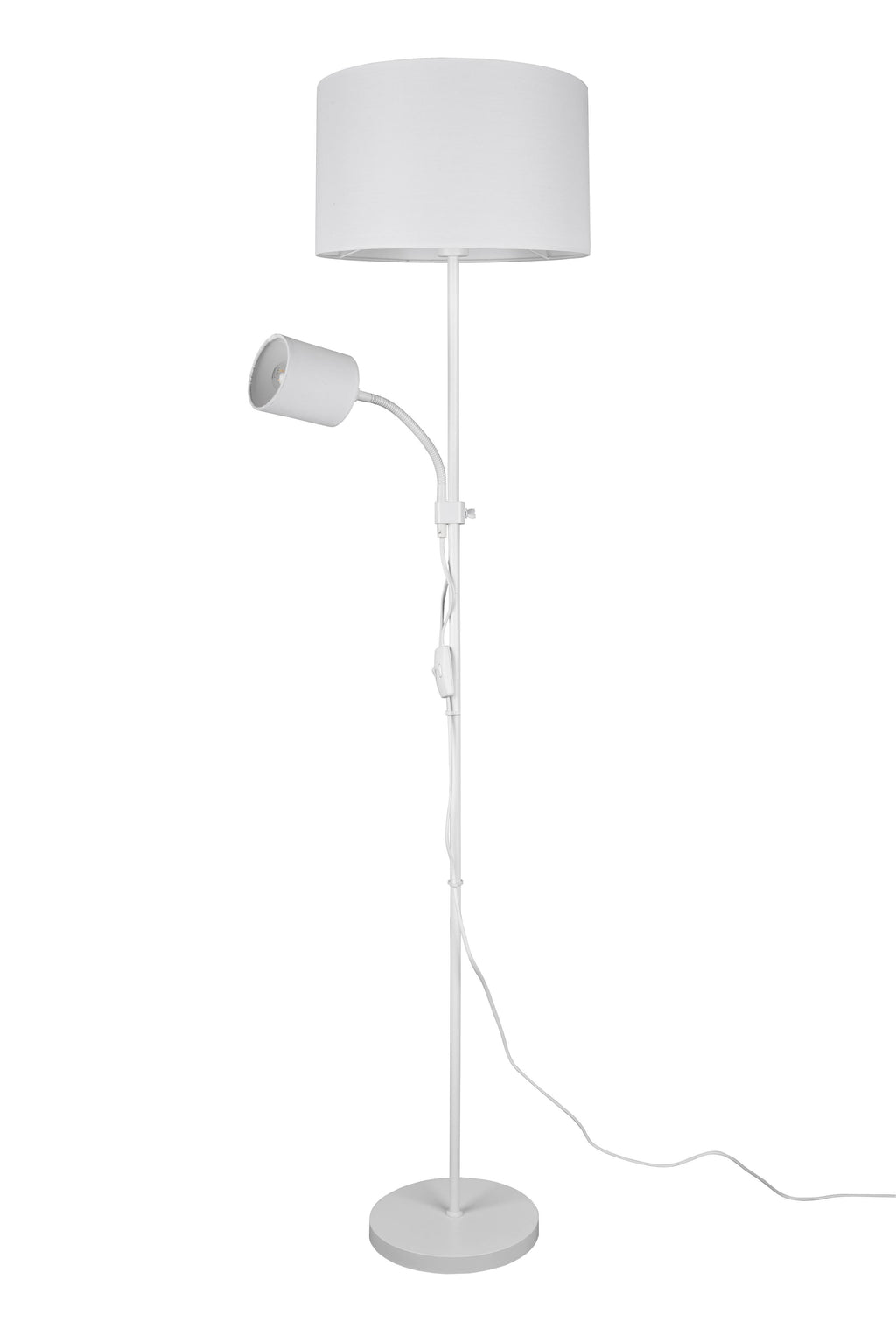 Owen Stehlampe aus weißem Metall mit Leselampe und 2 Lampenschirmen mit separaten Schaltern D. 36 cm Höhe 160 cm