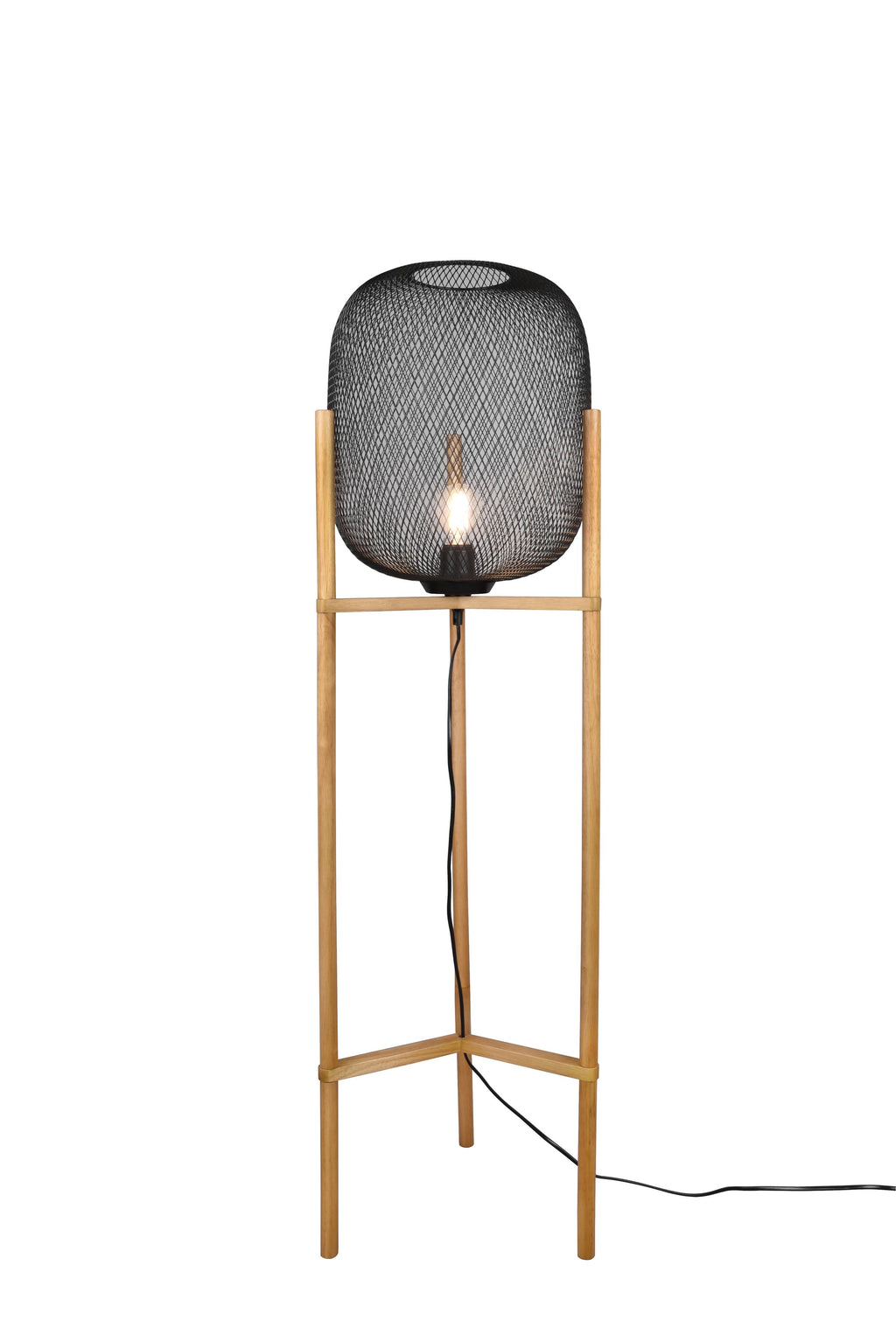 Standdiffusor Calimero aus schwarzem Metallgeflecht mit Struktur aus Naturholz H. 123 cm