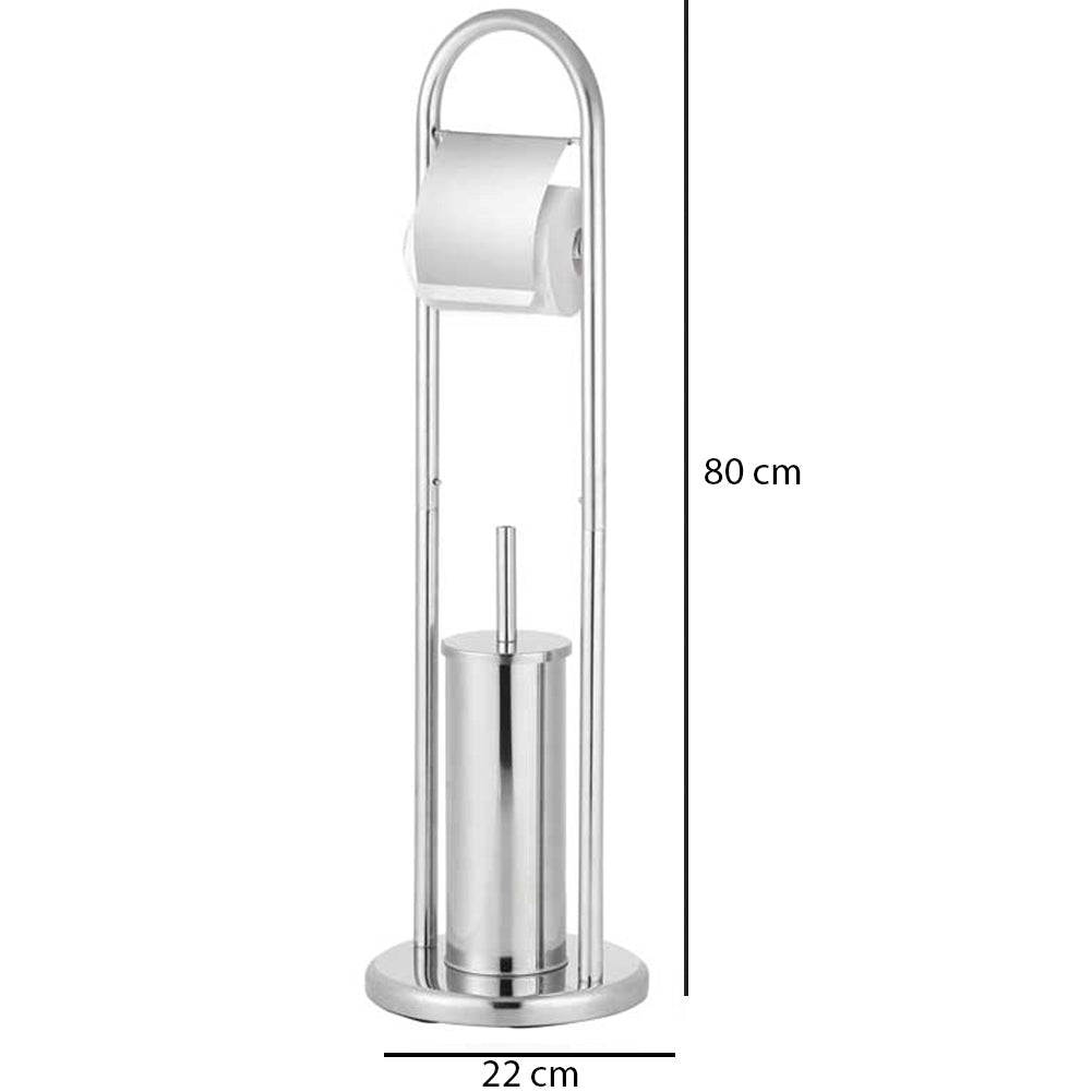 Piantana Portarotolo Con Portascopino in Acciaio Cromato Porta Carta Igienica