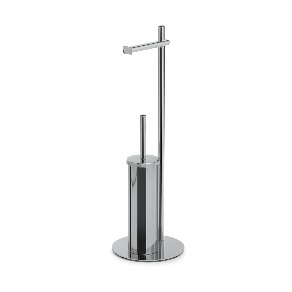 Piantana portarotolo e portascopino semplice dal design senza tempo. Questa Piantana rappresenta la semplicità e la pulizia all'interno di un bagno. Forma rotonda, asta slanciata, dona alla sala da bagno un aspetto elegante e ordinato.