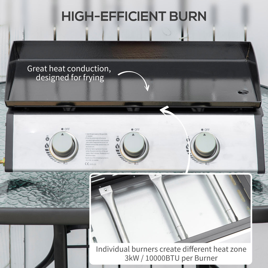 - 3 BRUCIATORI A GAS: Il barbecue a gas è dotato di accensione piezoelettrica e 3 bruciatori con una potenza di 3kW, che assicurano un riscaldamento uniforme della piastra. Puoi anche creare 3 aree di cottura con temperature diverse per preparare vari cibi nello stesso tempo