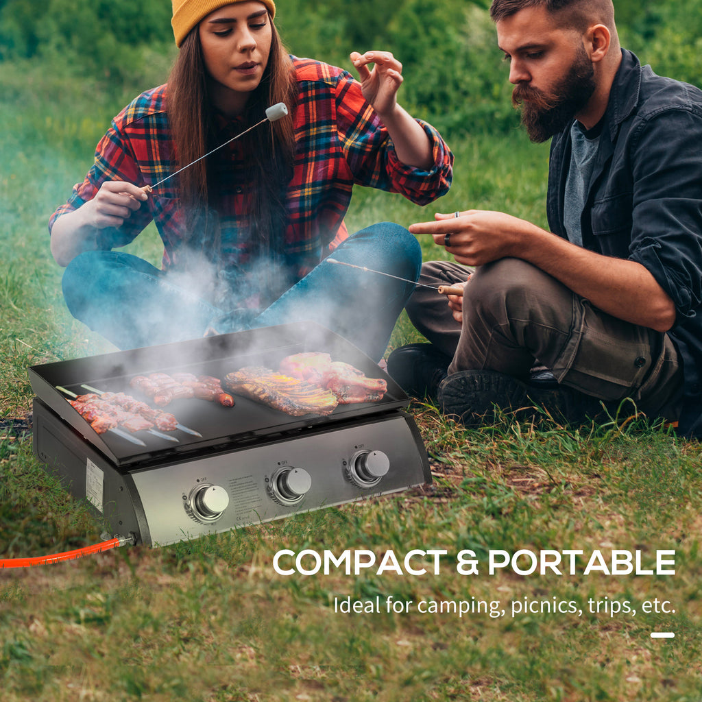 Il barbecue a gas è dotato di un design compatto che lo rende facile da trasportare ovunque tu voglia organizzare un pranzo all'aperto. La sua piastra antiaderente evita che i cibi si attacchino durante la cottura e i suoi 3 bruciatori regolabili ti permettono di utilizzare diverse temperature contemporaneamente, così potrai cuocere diversi tipi di alimenti. Inoltre, grazie al vassoio di raccolta del grasso, la pulizia della piastra risulterà molto più semplice.