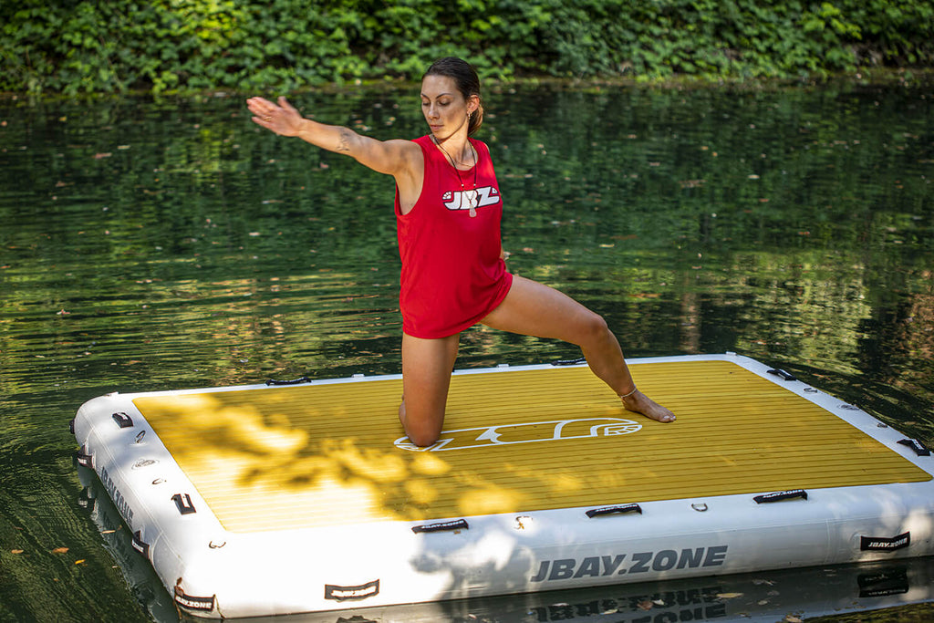 Jdock è la piattaforma gonfiabile per il relax firmata JBAY.ZONE stabile, resistente ed estremamente versatile. Jdock si può usare in infiniti modi, infatti, si dimostra perfetta per esempio come piattaforma per lo Yoga o come solida base per tuffarsi in acqua o rilassarsi sotto il sole. La costruzione interna in Drop-Stitch fornisce un ottimo supporto al peso fino a ben 470kg.