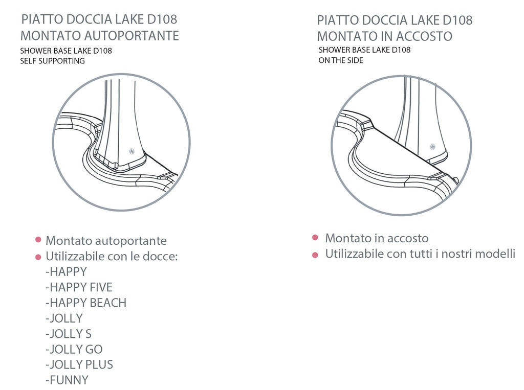 Compatibile con docce serie JOLLY (cod. A300/320/330, A500/520/530/560, A600/620/630/660 e loro corrispondenti modelli tradizionali)