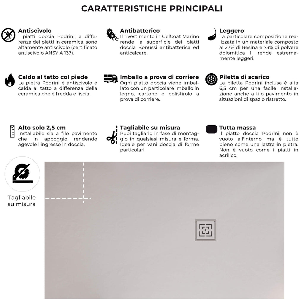 Duschwanne aus Bonussi Canton White Stone, verschiedene Größen