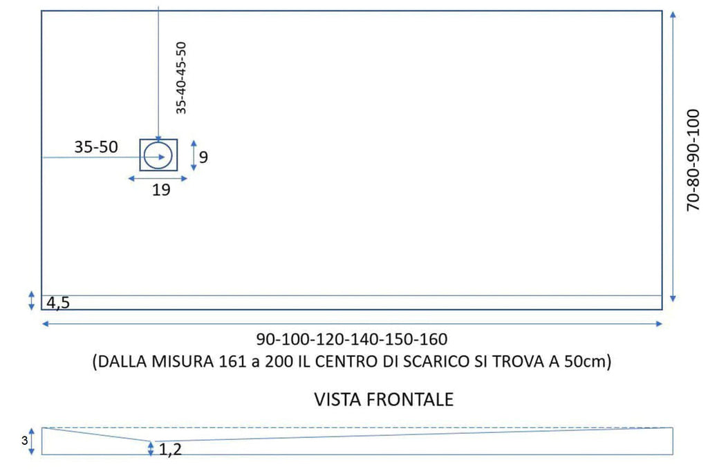 Everest Bonussi Duschwannen aus Schiefer sind vollflächig und können daher an jeder Stelle bis zu maximal 10 cm pro Seite gekürzt werden, ohne Gefahr zu laufen, das Gefälle zu verlieren.