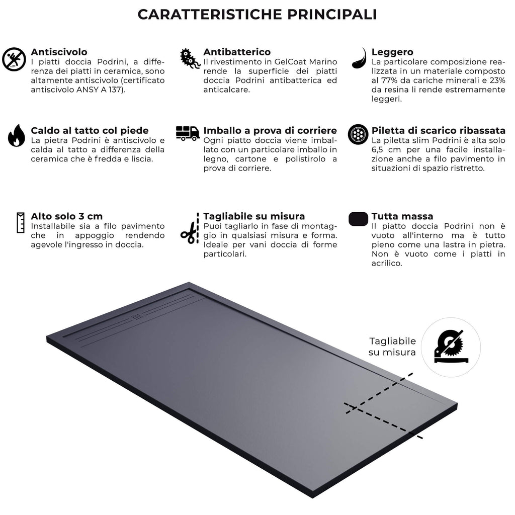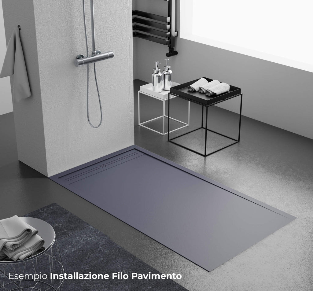 Rechteckige Duschwanne aus Marmorharz Bonussi Ardesia Makalu Anthrazit RAL 7016