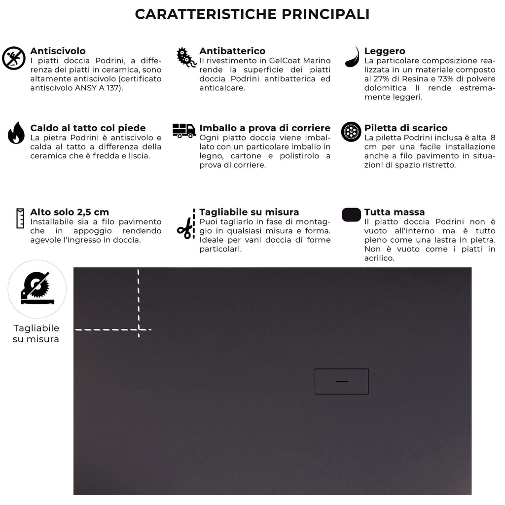 Manila-Duschwannen sind sehr kratzfest, dank des 1 mm dicken Schutzes aus antibakteriellem Sanitär-Gelcot , dem gleichen Material, das zur Abdeckung der Bootsrümpfe verwendet wird, aber weiter gehärtet, sorgt es für maximale Beständigkeit gegen Kratzer, UV-Strahlen und sie sind wasserdicht, bietet ein warmes Gefühl am Fuß .