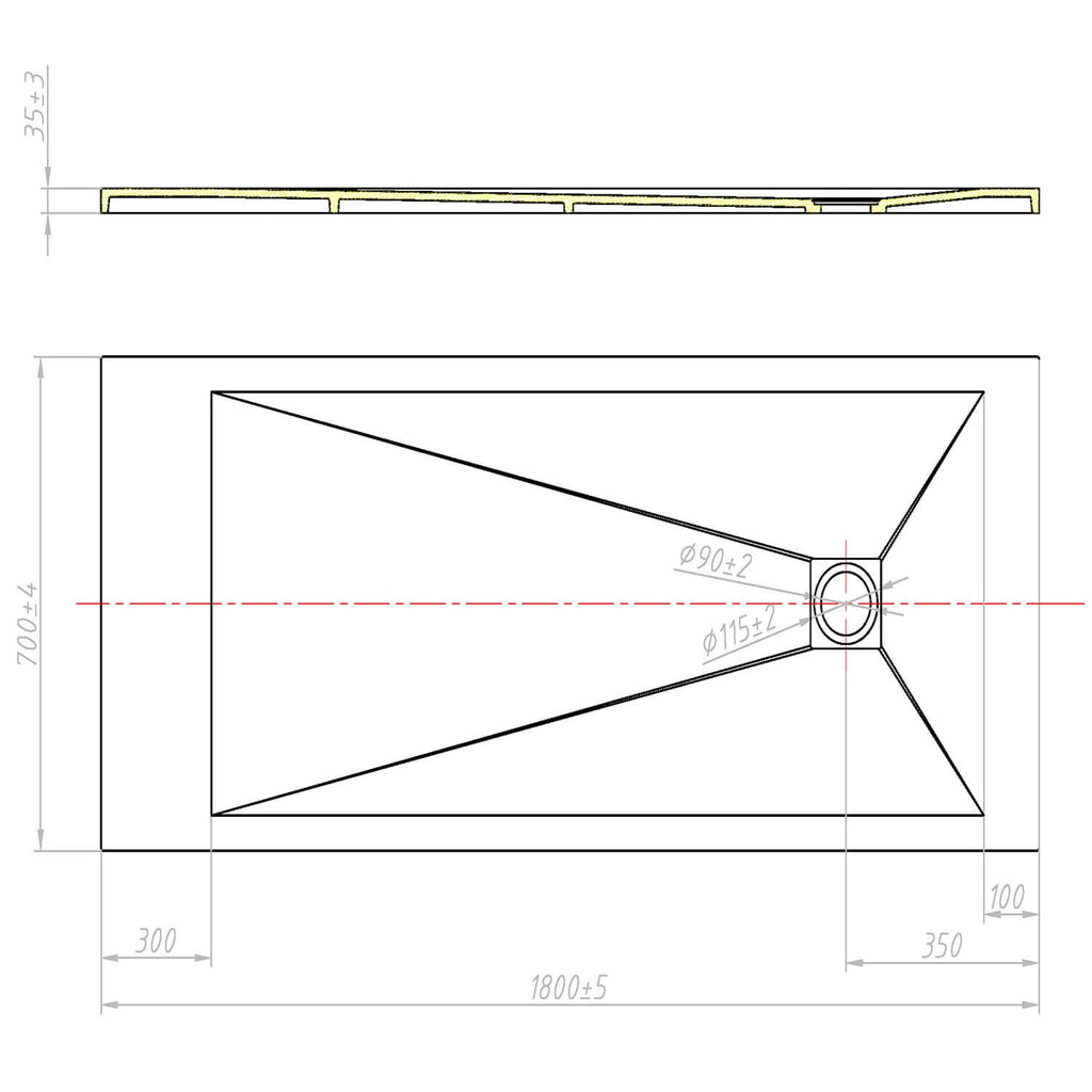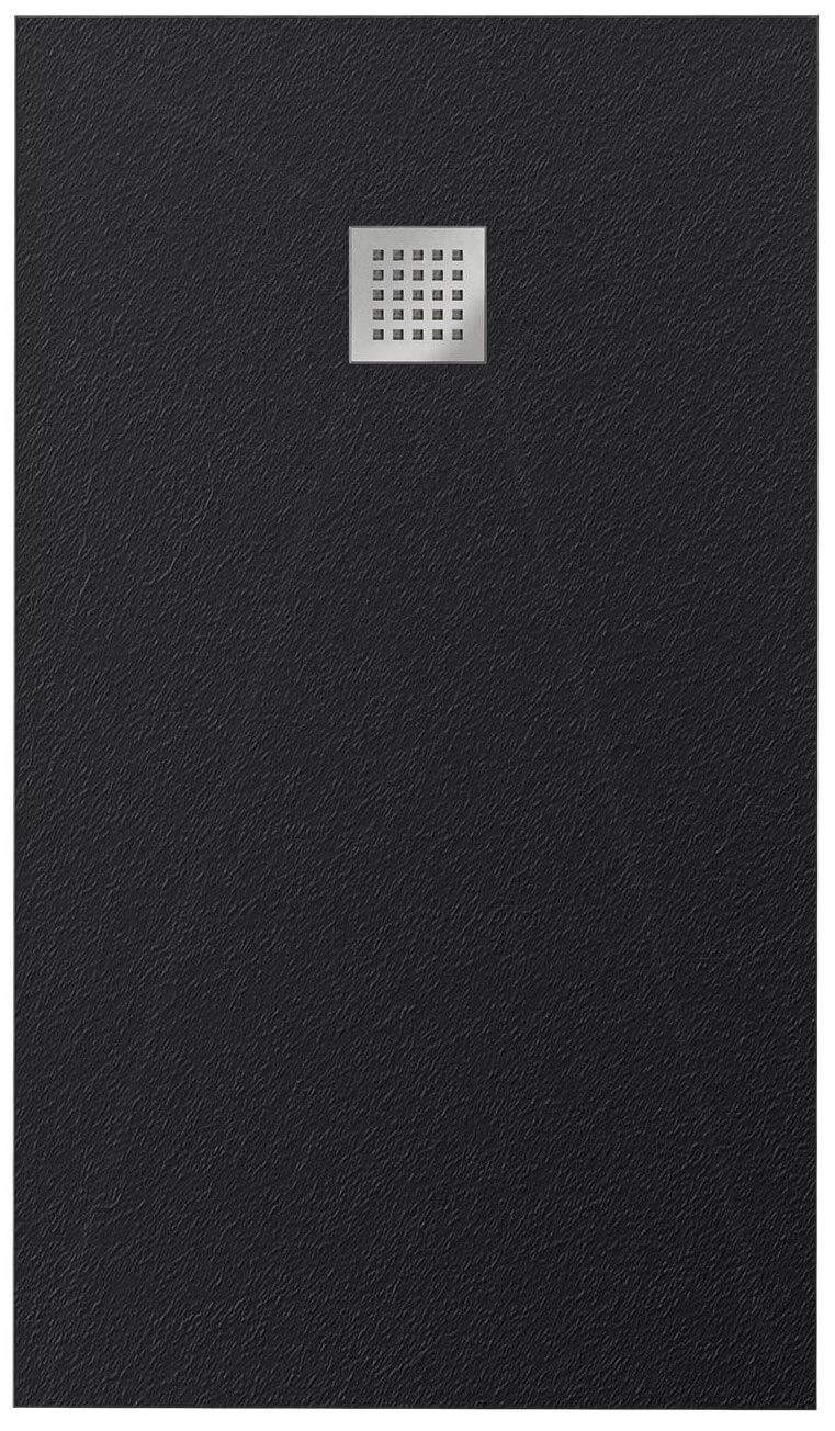 - Duschwanne 70x90 aus Marmorharz in Steinoptik mit Ablaufabdeckung aus anthrazitfarbenem Edelstahl