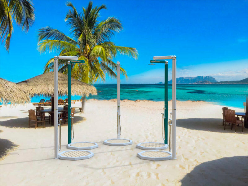 Piatto per Doccia da Esterno Ottagonale con Scarico. L'armonia e l'eleganza delle sue forme la rendono un complemento d'arredo adatto per qualsiasi ambientazione outdoor. Ideale per strutture pubbliche e balneari.