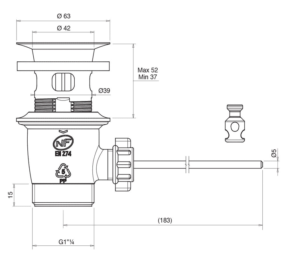 11/4 Pop-Up Ablaufgarnitur in Nile Satin Edelstahl