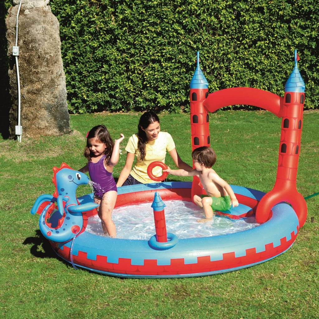 Bestway Castle Interactive Pool ist der Pool, auf den Ihre Kleinen gewartet haben. Hergestellt aus vorgetestetem Vinyl. Im Pool befindet sich ein Sprüher, der durch Drücken einer Taste am Boden aktiviert werden kann. Ausgestattet mit Sicherheitsventil.