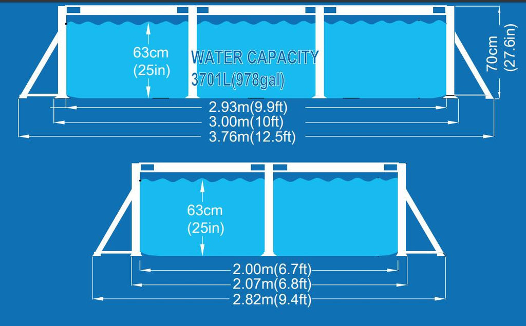 Jilong grauer rechteckiger oberirdischer Pool mit rostfreier Stahlkonstruktion und mehrschichtiger PVC-Auskleidung.